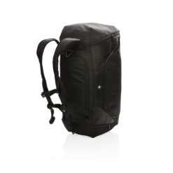 Plecak, torba sportowa, podróżna z ochroną RFID, wykonany z poliestru 1680D i 600D, pojemna przegroda główna z górnym zamknięciem na zamek błyskawiczny w kształcie litery U, boczna przegroda na buty, druga boczna kieszeń na zamek błyskawiczny, z tyłu dodatkowa kieszeń oraz kieszeń szybkiego dostępu, przednia kieszeń na zamek błyskawiczny z ochroną RFID, regulowane paski na ramię, nie zawiera PVC, ślad węglowy produktu: 7,81 kg CO2