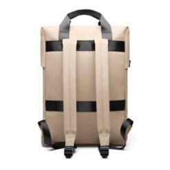 Plecak, przestronna przegroda główna zapinana na zamek, posiada kieszeń wewnątrz, kieszeń na zewnątrz oraz uchwyt na butelkę, pasek do zamocowania na walizce, regulowane paski na ramię, całkowita zawartość materiałów z recyklingu obliczona na podstawie wagi całkowitej przedmiotu: 19%
