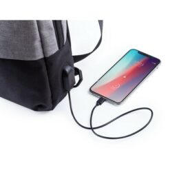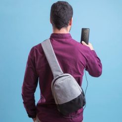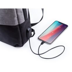 Plecak z miękkim paskiem na ramię, gniazdo USB do ładowania telefonów (power-bank nie jest dołączony), przegroda główna i kieszeń przednia na zamek
