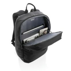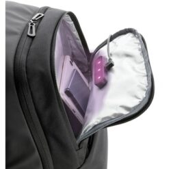 Plecak na laptopa 15,6″ z kieszenią sterylizującą UV-C, zintegrowana kieszeń sterylizująca zabija 99,9% bakterii na umieszczonych wewnątrz przedmiotach takich jak zegarki, telefony, słuchawki, biżuteria, itp., 3 minutowy tryb sterylizacji, dzięki specjalnej konstrukcji po otwarciu urządzenia w trakcie sterylizacji światło wyłączy się automatycznie bez narażania użytkownika, podwójne zamknięcie na zamek błyskawiczny i magnes, wnętrze z poliestru 210D, na zewnątrz poliestry 600D i 900D, kieszenie wewnątrz i na zewnątrz, w komplecie kabel micro USB do ładowania sterylizatora, zgodny z normą EN62471, nie zawiera PVC, ślad węglowy produktu: 6,07 kg CO2