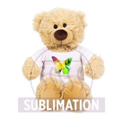 Miś z białą koszulką pod nadruk, nieoznakowana koszulka z poliestru jest pakowana oddzielnie, produkt wykonany z pluszu