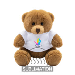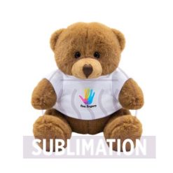 Brązowy miś z białą koszulką pod nadruk, nieoznakowana koszulka z poliestru jest pakowana oddzielnie, produkt wykonany z pluszu