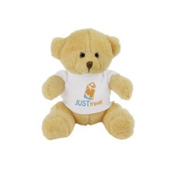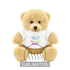 Miodowy miś z białą koszulką pod nadruk, nieoznakowana koszulka z poliestru jest pakowana oddzielnie, produkt wykonany z pluszu