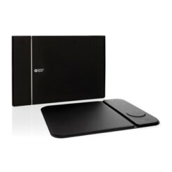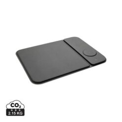 Podkładka pod mysz, ładowarka bezprzewodowa 3 w 1, magnetyczna ładowarka bezprzewodowa 15W, ładowarka bezprzewodowa 5W do słuchawek i drobnych akcesoriów, ładowarka bezprzewodowa 2,5W do smartwatchy (tylko iOS), wykonana z PU z recyklingu, działa z telefonami posiadającymi możliwość ładowania indukcyjnego, wejście 9V/3A, wyjście dla telefonu 9 V/1.1 A, 9 V/1.67 A, 15 W, wyjście dla słuchawek 5V/1A, 5W, wyjście smartwatcha 5V/0.5A, kabel 120 cm z TPE z recyklingu w komplecie, w pudełku z certyfikatem FSC®