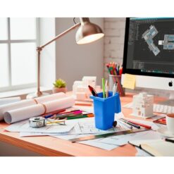Pojemnik na przybory do pisania „kontener na śmieci” | Erco z nadrukiem Twojego logo, materiał: pp, kolor: niebieski