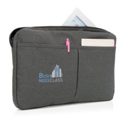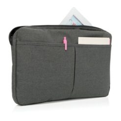 Pokrowiec na laptopa 15″, wykonany z poliestru 600D, posiada miejsce na ładowarkę, kable, klucze i inne akcesoria, nie zawiera PVC, ślad węglowy produktu: 1,67 kg CO2