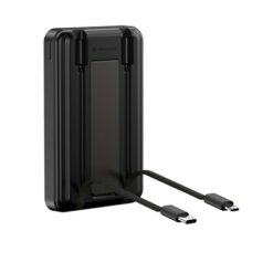 Power bank 10000 mAh, ładowarka bezprzewodowa 15W, możliwość ładowania 3 urządzeń jednocześnie, zintegrowane kable USB-C oraz iOS, wykonany z ABS z recyklingu, zawartość materiałów z recyklingu obliczona na podstawie wagi całkowitej przedmiotu: 24%