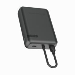 Power bank 10000 mAh, szybkie ładowanie PD do 20W, możliwość jednoczesnego ładowania dwóch urządzeń, port USB-C oraz wbudowany kabel USB-C, szybkie ładowanie samego power banku, wykonany z recyklingowanego ABS i PC z certyfikatem RCS, zawartość materiałów z recyklingu: 20%, opakowanie ograniczające użycie plastiku, wolny od PVC