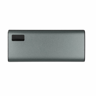 Power bank 10000 mAh, wyjście USB 5V/2.4A, wejście/wyjście USB-C 5V/2.4A, posiada cyfrowy wyświetlacz poziomu naładowania, kabel USB-C w komplecie, ikona aluminium z recyklingu na produkcie, produkt wykonany z aluminium z recyklingu, zgodny z certyfikatem GRS (Global RecycIed Standard)