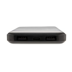 Power bank 10000 mAh, 2 wyjścia USB do ładowania 2 urządzeń jednocześnie, 4 diody wskazujące poziom naładowania, kieszonkowy rozmiar, wykonany z lekkiego ABS, wbudowany akumulator litowo-polimerowy klasy A o dużej gęstości i trwałości, w pełni naładowane urządzenie może naładować telefon do 5 razy, wejście 5V/2A, wyjście USB 1 5V/2A, wyjście USB 2 5V/1A, kabel micro USB w komplecie, ślad węglowy produktu: 4,11 kg CO2
