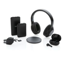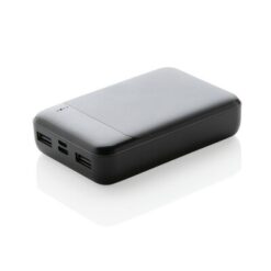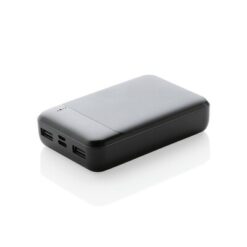 Power bank 10000 mAh, w pełni naładowany, wbudowany akumulator litowo polimerowy klasy A pozwala na naładowanie telefonu do 5 razy, obudowa wykonana z ABS pochodzącego z recyklingu, posiadają certyfikat RCS (Recycled Claim Standard), który jest stosowany gdy produkt jest wykonany częściowo lub w całości z materiałów pochodzących z recyklingu, wejście typu C 5V/2A, wejście micro USB 5V/2A, wyjście USB 5V/2A, kabel z TPE z recyklingu w komplecie, nie zawiera PVC, ślad węglowy produktu: 3,64 kg CO2