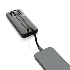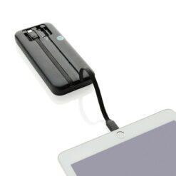 Power bank 10000 mAh ze zintegrowanymi kablami Turbopack z nadrukiem Twojego logo, kolor: czarny