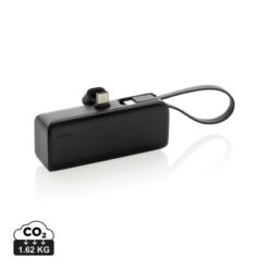 Power bank 3000 mAh, zintegrowany kabel USB C (wejście/wyjście), wyjście USB typu C, wykonany z ABS i TPE z recyklingu z certyfikatem RCS, wejście 5V/2.1A, wyjście 5V/2.4A, całkowita zawartość materiałów z recyklingu obliczona w oparciu o wagę całkowitą przedmiotu: 19%, w pudełku z certyfikatem FSC®