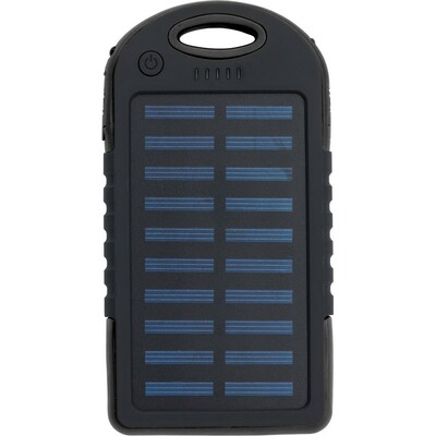 Power bank 4000 mAh z ładowarką słoneczną z nadrukiem Twojego logo, materiał: guma, kolor: czarny