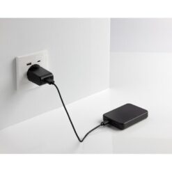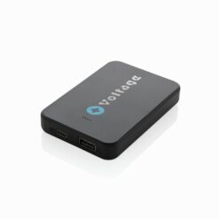 Powerbank o pojemności 5000 mAh z portem wejścia/wyjścia USB typu C i dodatkowym portem USB typu A, obudowa wykonana jest z tworzywa ABS pochodzącego z recyklingu z certyfikatem RCS. RCS (Recycled Claim Standard) to standard weryfikacji zawartości surowców wtórnych w produkcie w całym łańcuchu dostaw, wskaźniki zasilania wskazują pozostały poziom energii, wejście typu C 5 V/2,4 A; USB A: wyjście 5 V/2,4 A, wyjście typu C: 5 V/2 A produkt i akcesoria nie zawierają PVC, w zestawie kabel ładujący TPE z recyklingu z certyfikatem RCS, zapakowane w opakowanie FSC® mix