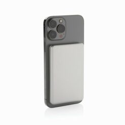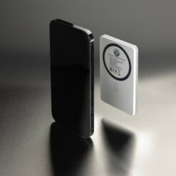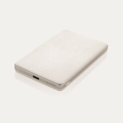 Power bank 5000 mAh, ładowarka bezprzewodowa 5W, obudowa została wykonana z aluminium pochodzącego z recyklingu z certyfikatem RCS i plastiku ABS pochodzącego z recyklingu. RCS (Recycled Claim Standard) to standard weryfikacji zawartości surowców wtórnych w produkcie w całym łańcuchu dostaw, produkt zawiera wytrzymałą baterię litowo-polimerową klasy A, wskaźniki zasilania wskazują pozostały poziom energii, wejście typu C: 5 V / 2,4 A; Wyjście USB C: 5 V / 2 A.4A, produkt i akcesoria nie zawierają PVC, zestaw zawiera kabel ładujący TPE z recyklingu z certyfikatem RCS, zapakowany w opakowanie FSC® mix
