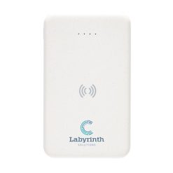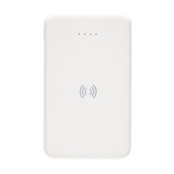 Power bank 5000 mAh, ładowarka bezprzewodowa 5W z nadrukiem Twojego logo, kolor: biały