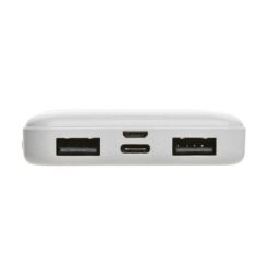 Power bank 5000 mAh, 4 diody wskazujące poziom naładowania, wykonany z ABS z recyklingu z certyfikatem RCS, całkowita zawartość materiałów z recyklingu obliczona na podstawie wagi całkowitej przedmiotu: 22%, wbudowany akumulator litowo polimerowy o dużej gęstości, wejście micro USB 5V/2A, wejście typu C 5V/2.4A, wyjście USB 5V/2.4A, wyjście typu C 5V/2A, w komplecie kabel z TPE z recyklingu z certyfikatem RCS, w pudełku z papieru kraftowego z certyfikatem FSC®, ślad węglowy produktu: 2,33 kg CO2