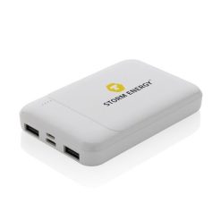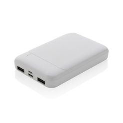 Power bank 5000 mAh, plastik z recyklingu z nadrukiem Twojego logo, kolor: biały
