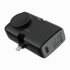 Power bank 5000 mAh, zintegrowana ładowarka bezprzewodowa do zegarka (tylko iOS), szybkie ładowanie do 20W, zintegrowane wyjścia USB-C i iOS, stojak na telefon, wyjście USB-C, działa z urządzeniami posiadającymi możliwość ładowania indukcyjnego, wykonana z ABS z recyklingu, całkowita zawartość materiałów z recyklingu obliczona na podstawie wagi całkowitej produktu: 24%
