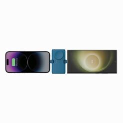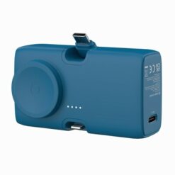 Power bank 5000 mAh, zintegrowana ładowarka bezprzewodowa do zegarka (tylko iOS), szybkie ładowanie do 20W, zintegrowane wyjścia USB-C i iOS, stojak na telefon, wyjście USB-C, działa z urządzeniami posiadającymi możliwość ładowania indukcyjnego, wykonana z ABS z recyklingu, całkowita zawartość materiałów z recyklingu obliczona na podstawie wagi całkowitej produktu: 24%