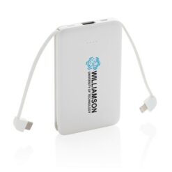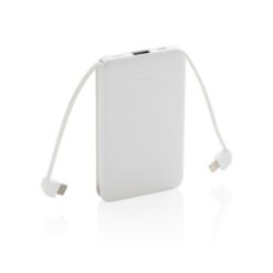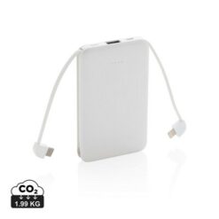 Power bank 5000 mAh, zintegrowany kabel 3 w 1 z nadrukiem Twojego logo, materiał: plastik, kolor: biały