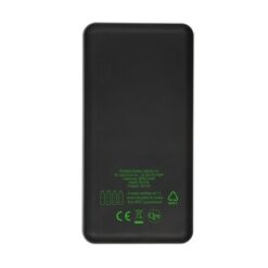 Power bank 8000 mAh z frontem wykonanym z RPET, 4 diody wskazujące poziom naładowania, 2 wyjścia USB (5V/2A), 2 wejścia (5V/2A): micro USB oraz USB-C, kabel micro USB w komplecie