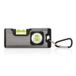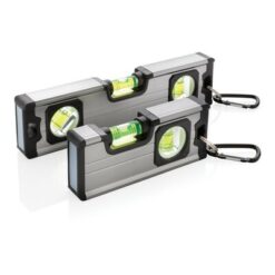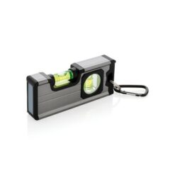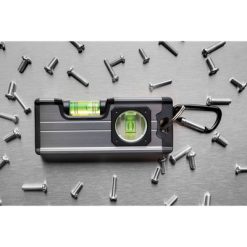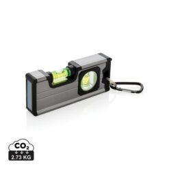 Poziomica, długość 12 cm, 2 płaszczyzny pomiaru, obudowa wykonana z aluminium, wbudowany magnes, z karabińczykiem, ślad węglowy produktu: 2,73 kg CO2