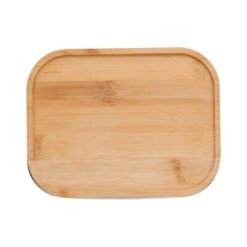 Pudełko śniadaniowe 600 ml z bambusowym wieczkiem i sztućcami (nóż, widelec), połączone paskiem