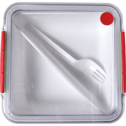 Pudełko śniadaniowe 920 ml, widelec z nadrukiem Twojego logo, materiał: pp, silikon, as, kolor: czerwony