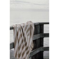 Ręcznik plażowy, wykonany w 100% z bawełny o gramaturze 200 g/m2, wykonany w 70% z bawełny z recyklingu i w 29% z poliestru z recyklingu z certyfikatem GRS
