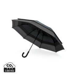 Rozszerzalny parasol sztormowy 23″ do 27”, automatyczne otwieranie, metalowa rama, żebra z włókna szklanego, gumowy uchwyt, dzięki zastosowaniu technologii fizycznych znaczników AWARE™ wykorzystane materiały są identyfikowalne z pochodzenia, 2% wpływów z każdego sprzedanego produktu z kolekcji Impact jest przekazywane na rzecz Water.org, ślad węglowy produktu: 3,84 kg CO2