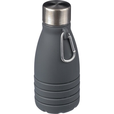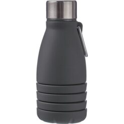 Składana butelka sportowa 550 ml z karabińczykiem umożliwiającym przypinanie, produkt wykonany z silikonu, stali nierdzewnej, PP i aluminium
