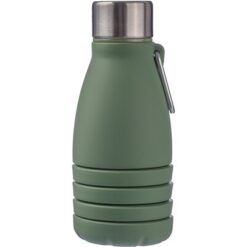 Składana butelka sportowa 550 ml z karabińczykiem z nadrukiem Twojego logo, materiał: aluminium, pp, stal nierdzewna, silikon, stal, kolor: zielony