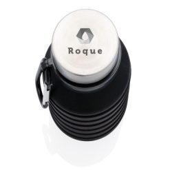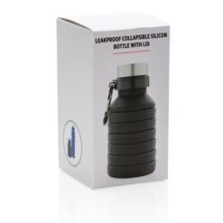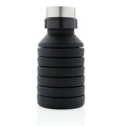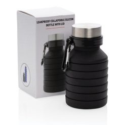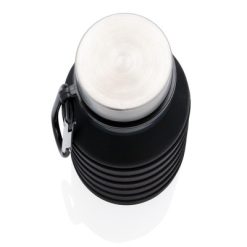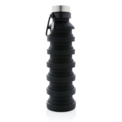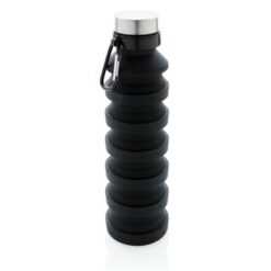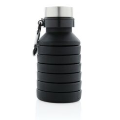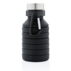 Składana butelka sportowa 550 ml z karabińczykiem z nadrukiem Twojego logo, materiał: aluminium, silikon, kolor: czarny