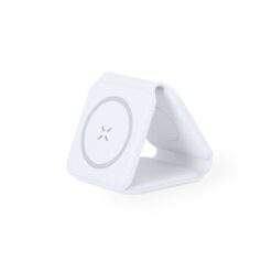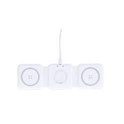Składana magnetyczna ładowarka bezprzewodowa 15W, 3 w 1 z nadrukiem Twojego logo, materiał: plastik, kolor: biały