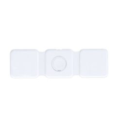 Składana magnetyczna ładowarka bezprzewodowa 15W, 3 w 1, działa z urządzeniami posiadającymi możliwość ładowania indukcyjnego, funkcja magnetyczna działa tylko z kompatybilnymi urządzeniami, 3 cewki ładowania bezprzewodowego (5W-15W, 5W, 2.5W), możliwość ładowania trzech urządzeń jednocześnie, wejście USB-C 9-12V/3-2.2A, kabel USB-C w komplecie, produkt wykonany z ABS