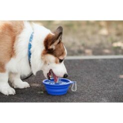 Składana miska dla psa, z karabińczykiem, brzeg miski dopasowany kolorystycznie do materiału głównego