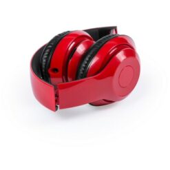 Składane bezprzewodowe słuchawki nauszne, radio z nadrukiem Twojego logo, materiał: plastik, kolor: czerwony