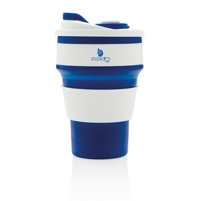 Składany kubek podróżny 350 ml z nadrukiem Twojego logo, materiał: pp, silikon, kolor: niebieski