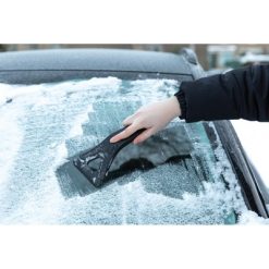 Skrobaczka do szyb 3 w 1, funkcje: skrobanie lodu, odśnieżanie, usuwanie wody, wykonana z materiałów z recyklingu z certyfikatem RCS, całkowita zawartość materiałów z recyklingu obliczona w oparciu o wagę całkowitą przedmiotu: 98%, ślad węglowy produktu: 0,11 kg CO2