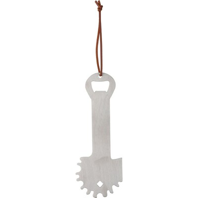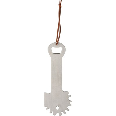 Stalowy skrobak do grilla, otwieracz do butelek, sznurek ułatwiający noszenie, zapakowany w rękaw papieru kraftowego