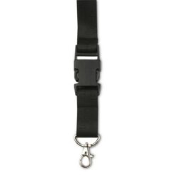 Smycz reklamowa z nadrukiem Twojego logo, materiał: metal, plastik, poliester, kolor: czarny
