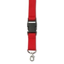 Smycz reklamowa z nadrukiem Twojego logo, materiał: metal, plastik, poliester, kolor: czerwony
