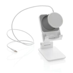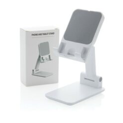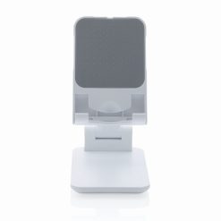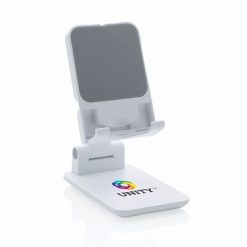 Stojak na telefon, tablet z nadrukiem Twojego logo, materiał: plastik, silikon, kolor: biały