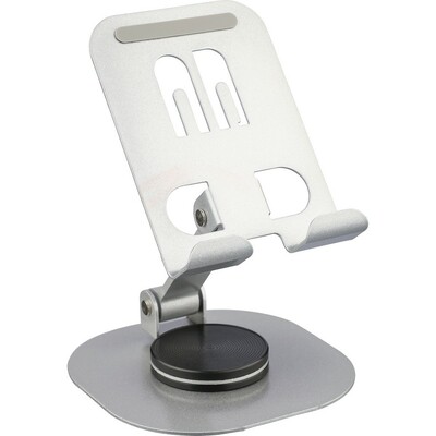 Stojak na telefon funkcją obrotu o 360 stopni, składany na płasko, zapakowany w białe pudełko, produkt wykonany z aluminium