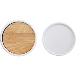 Świeczka zapachowa z nadrukiem Twojego logo, materiał: bambus, szkło, wosk, kolor: błękitny