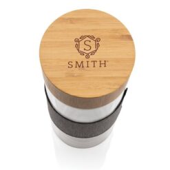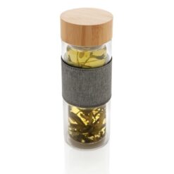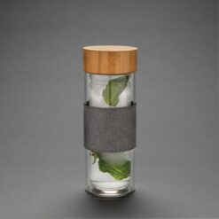 Szklana butelka 360 ml w pokrowcu z nadrukiem Twojego logo, materiał: bambus, szkło, kolor: neutralny