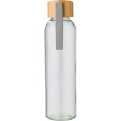 Szklana butelka 600 ml, silikonowy uchwyt, bambusowa zakrętka