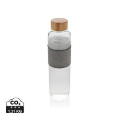 Szklana butelka 750 ml w pokrowcu z nadrukiem Twojego logo, materiał: bambus, szkło, kolor: neutralny